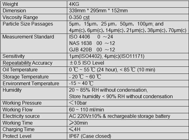 4.Measurement standards: NAS1638, ISO4406, GJB 420B.