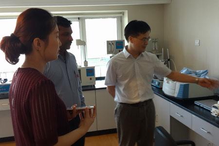 鄧總(中)陪同Kalimuthu先生(右)觀看旁路過濾產品